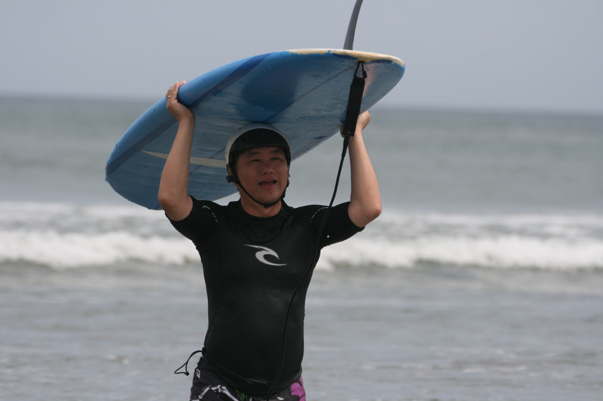 Setelah mencoba beberapa kali, tanpa hasil yang memuaskan, akhirnya saya sadar diri bahwa surfing bukanlah olahraga untuk orang yang sudah tidak prima lagi olah tubuhnya. Tambahan pula ketika itu, bibir saya sempat di tampol sama surf board karena tamparan gelombang, sampai bibir bawah berdarah dan mulut jadi monyong :).