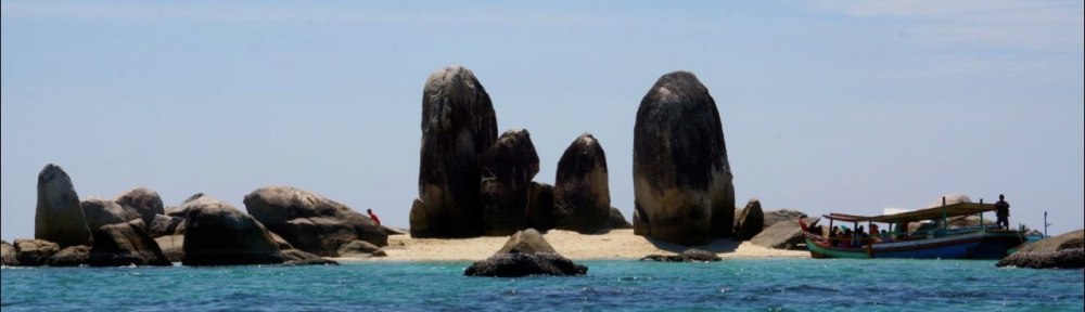 Setelah puas berfoto dan berbasah2 ria di Pulau Pasir, kami berpindah tempat ke Pulau Berlayar, yang dinamakan demikian karena bentuk batu2nya seperti layar dari perahu.