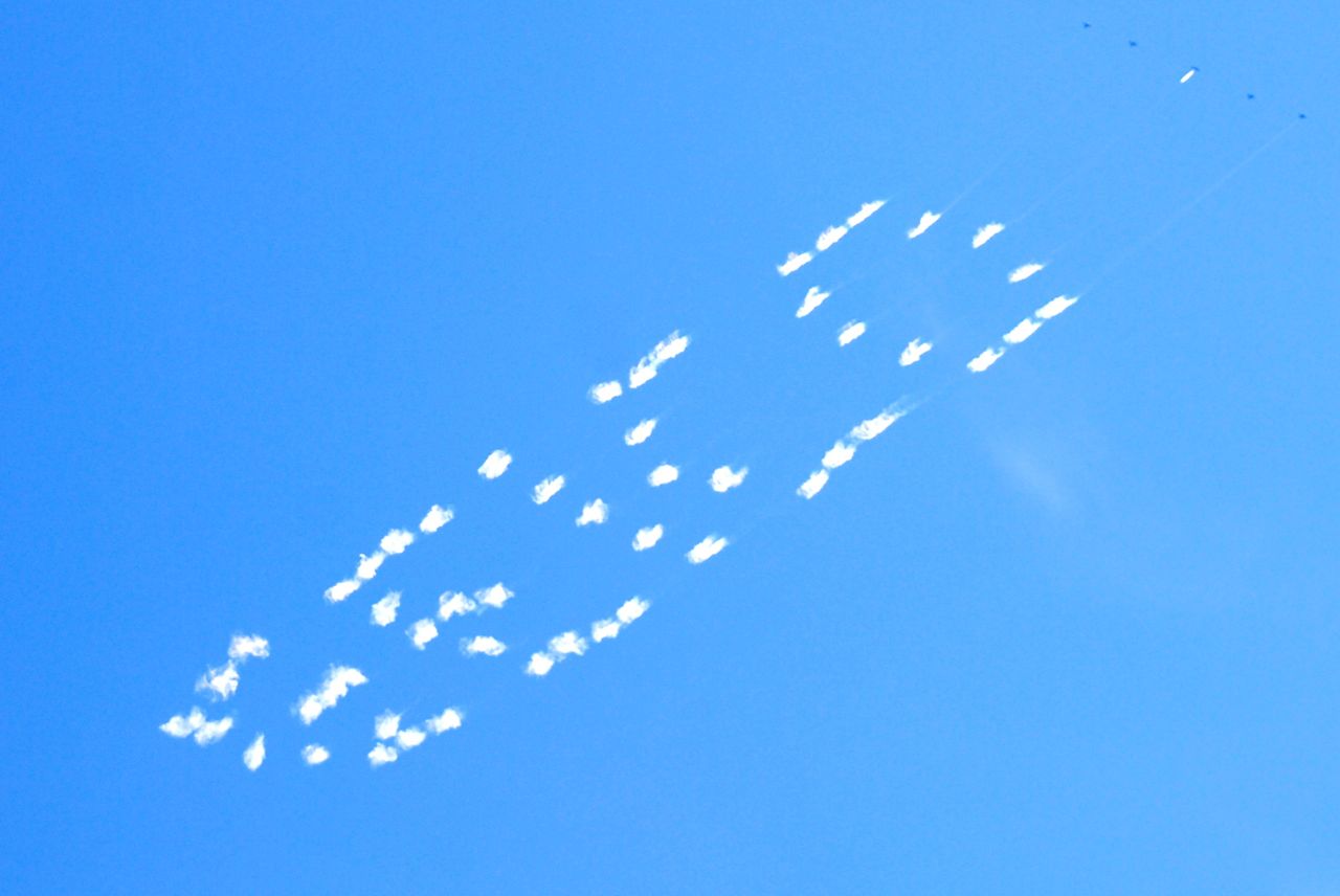 Setelah saya menggunakan telelens, barulah ketahuan bagaimana caranya mereka menulisi langit.