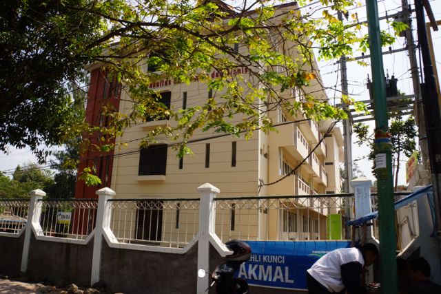 Setelah sekian puluh tahun, gedung ini tampak sama merananya seperti 30 tahun yang lalu. Bedanya hanya cat yang lebih baru dan taman yang lebih terpelihara. Ketika mengintip ruang kuliah, laboratorium dan teristimewa TOILET nya, saya rasanya ingin menangis, kok gak berubah ya. Saya sempat tergoda untuk memotret TOILET yang jorok itu namun urung saya lakukan, trenyuh saya.