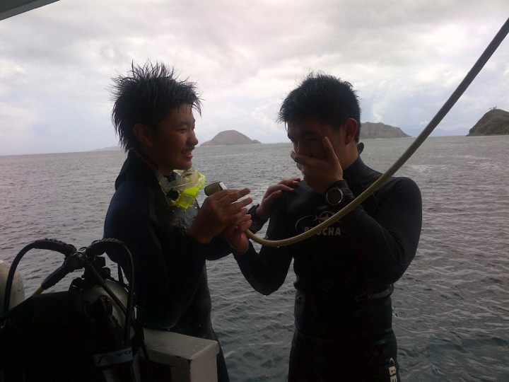Penyelaman pertama hari itu adalah di dive site sekitar Pulau Sebayur, sama seperti kemarin visibility tidak membaik, paling jauh sekitar 5 meter, ikan dan coral reef yang saya lihat tidak ada yang istimewa.