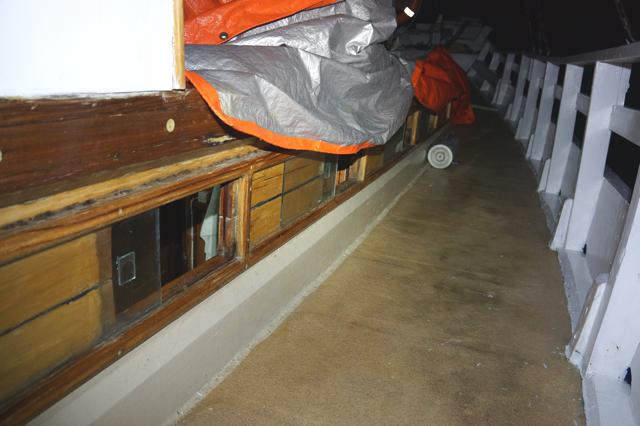 Dengan mata setengah terpejam, saya mencoba bangun, wuikkk…badan serasa remuk karena kasur busa yang kurang keras dan akibat berbalet ria di bawah air. Saya turun dari dipan saya, dan memeriksa suara apa yang mengganggu sekali itu.Setelah keluar dari “suite room” saya, baru saya sadar yang jedak jeduk adalah pintu kamar yang terbuka tertutup akibat diombang ambing ombak sehingga menghamtam dinding kamar. Selain itu, koper2 yang diletakkan di gang, bergeser kesana kemari. Hayaahhh…ada2 aja.