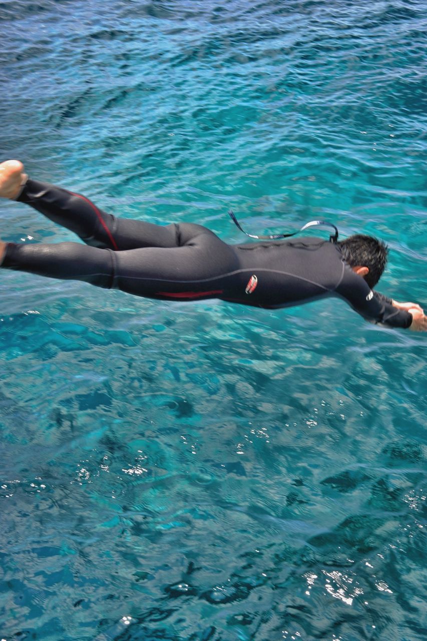 Anak2 yang terbius oleh indahnya suasana dan tenang serta jernihnya air, serta tenaga anak muda yang masih belum habis terlampiaskan oleh 4 dive, berenang kesana kemari dan juga melompat dari kapal ke laut :).