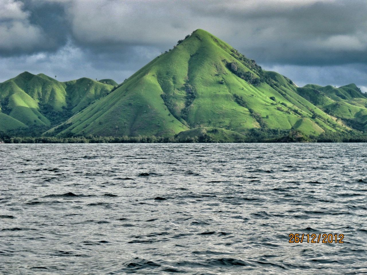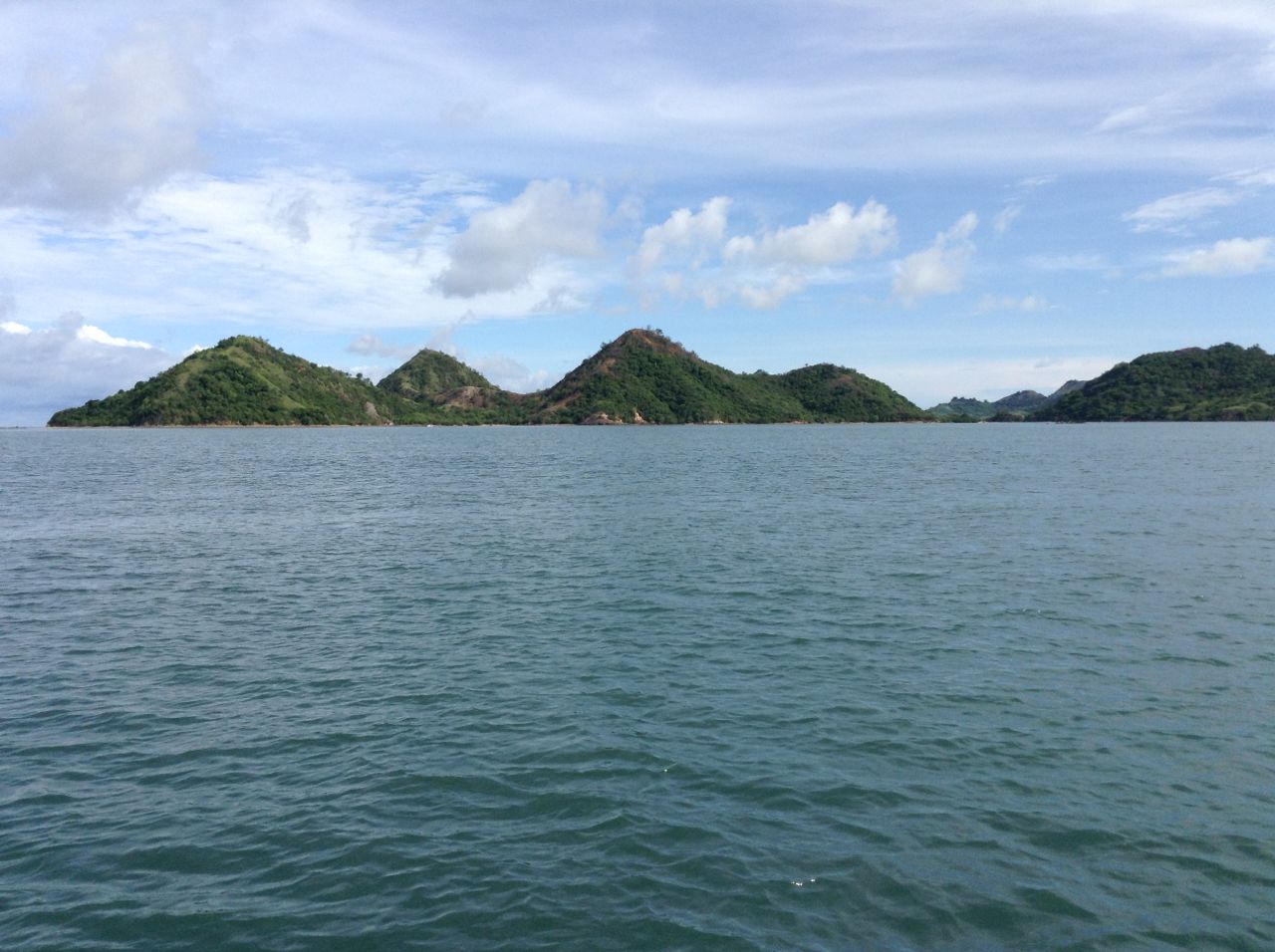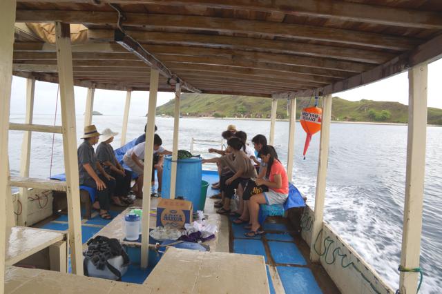 Perjalanan dari Pulau Sebayur ke Pulau Rinca memerlukan waktu kurang lebih 2 jam perjalanan. Selama perjalanan kami selalu dibuat khawatir oleh ancaman hujan yang bisa turun sewaktu-waktu. Saya berkali-kali mengatakan kekhawatiran saya ini ke istri saya, karena kalau sampai di Pulau Rinca sampai turun hujan, jalanan bisa berlumpur dan licin. Padahal kami diberitahu ada beberapa pilihan track nantinya, mulai dari 15 hingga 2 jam berjalan kaki.