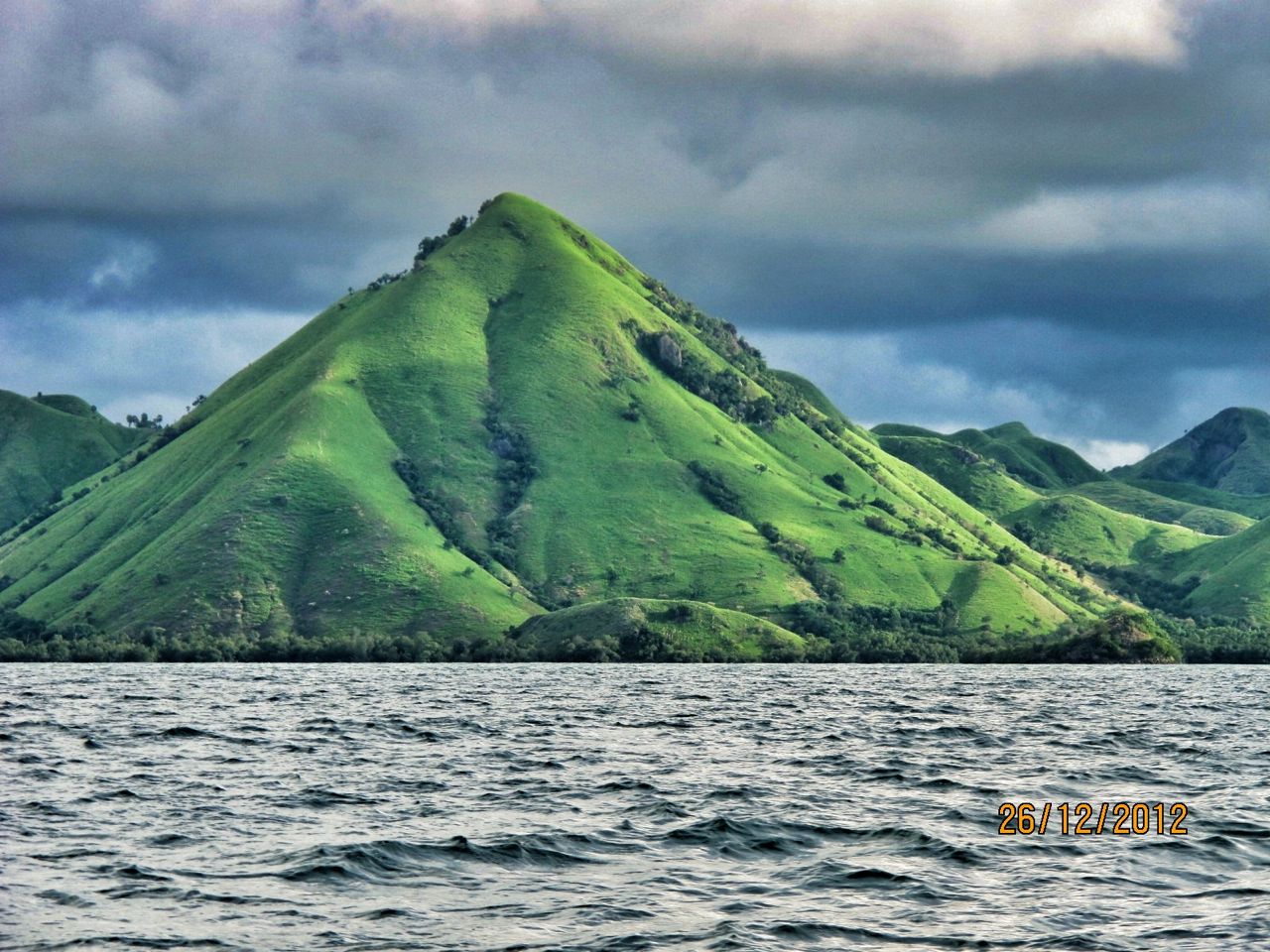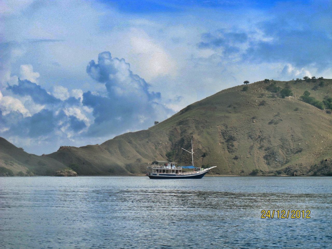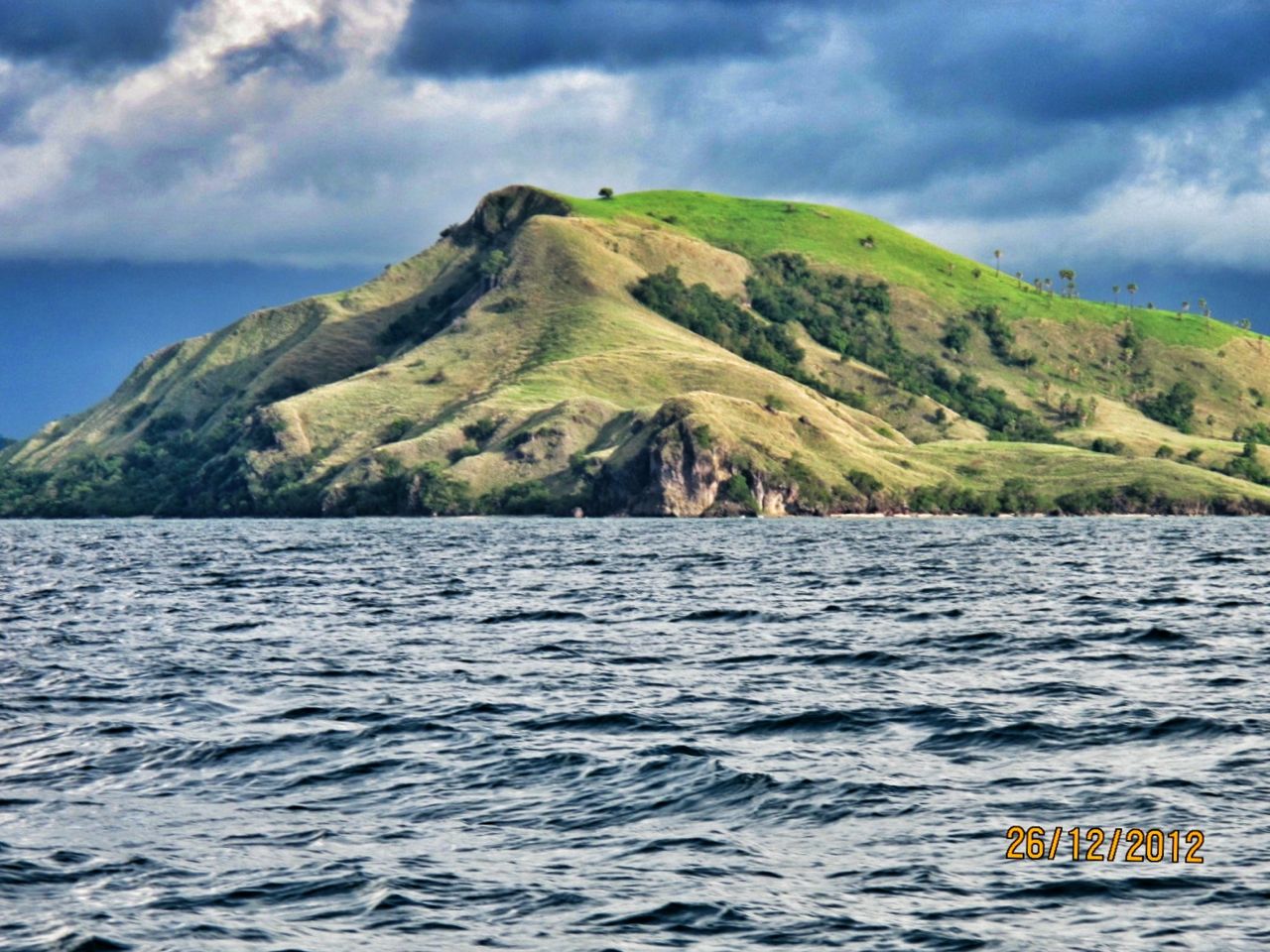 Perjalanan dari Pulau Sebayur ke Pulau Rinca memerlukan waktu kurang lebih 2 jam perjalanan. Selama perjalanan kami selalu dibuat khawatir oleh ancaman hujan yang bisa turun sewaktu-waktu. Saya berkali-kali mengatakan kekhawatiran saya ini ke istri saya, karena kalau sampai di Pulau Rinca sampai turun hujan, jalanan bisa berlumpur dan licin. Padahal kami diberitahu ada beberapa pilihan track nantinya, mulai dari 15 hingga 2 jam berjalan kaki.