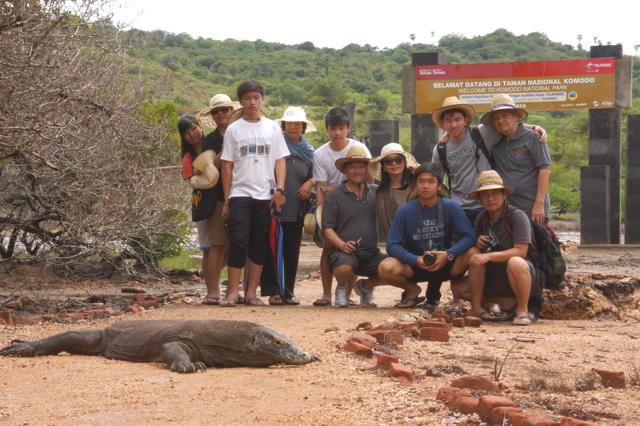 Kali ini, setelah mengetahui sifat si Komo, kami jadi ‘wir-wiren’ (takut-takut) ketika berpose di depan si Komo, takut jika sampai si doi bangun, berlari dan … menggigit pantat kami wkwkwkwk…