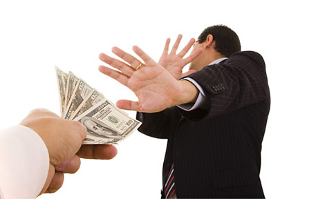 Jadi gimana dong? Diterima salah, ntar dituduh korupsi atau menerima suap, ditolak juga salah, sama2 teman sendiri tidak mau diajak makan siang rame2?