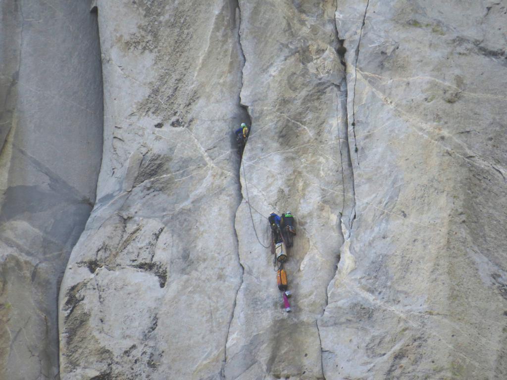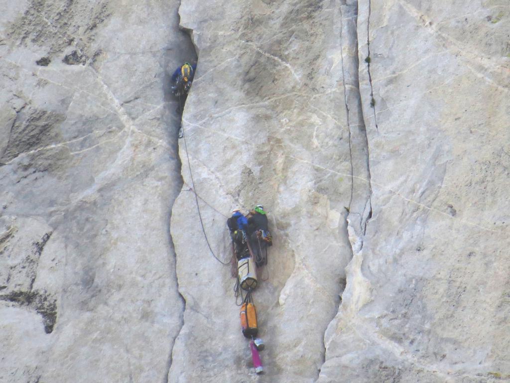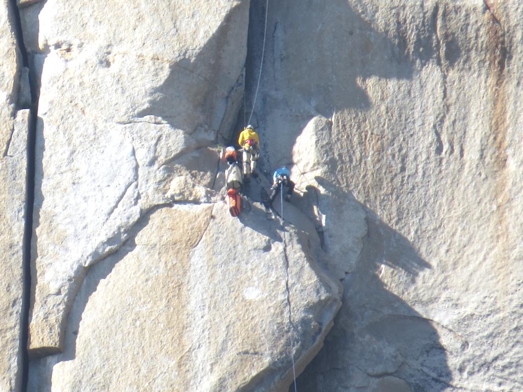 Sudah tampakkan, beberapa orang sedang bergelantung di tebing gunung batu:10b 11