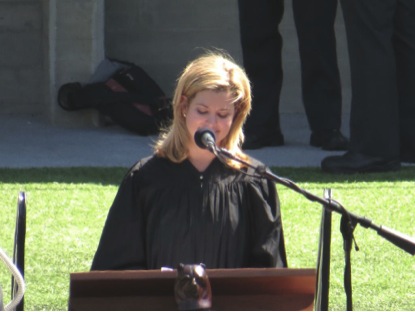 Berikut ini adalah ketika acara wisuda berlangsung. Jarak dari tempat duduk kami ke mimbar cukup jauh seperti tampak di foto berikut: