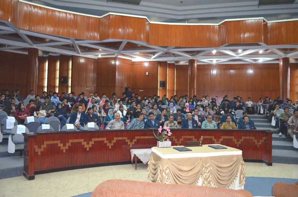 Sejenak kami beramah tamah di ruang itu, sambil menunggu aba2 dari panitia untuk memasuki gedung pertemuan. Beberapa saat kemudian kami akhirnya diundang hadir ke ruangan yang ternyata telah penuh dengan hampir 250 an mahasiswa tingkat akhir, yang sudah duduk dengan rapi di kursi pengunjung. Bapak Dekan dari fakultas lain dan bapak dosen yang terhormat juga telah duduk dengan rapi di bagian VIP pada deret paling depan.