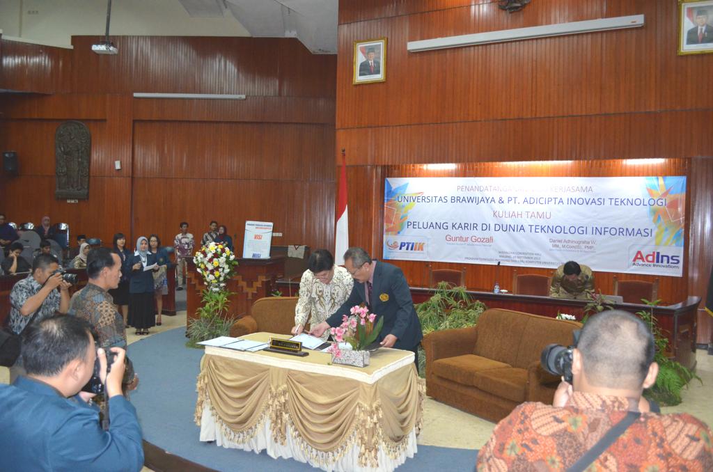 Kunjungan saya ke salah satu Universitas Top di Indonesia ini, bertujuan untuk menanda tangani nota kesepahaman kerjasama antara perusahaan kami, AdIns, dengan Unibraw, dalam hal ini PTIIK (Program Teknologi Informasi dan Ilmu Komputer), di dalam mentransfer pengalaman kami dilapangan, berbagi ilmu dan jika memungkinkan mengembangkan solusi di bidang Teknologi Informasi secara bersama-sama.