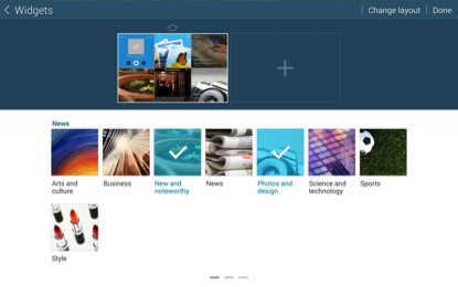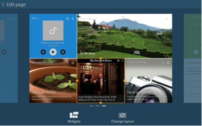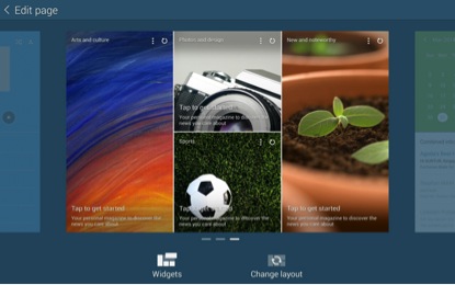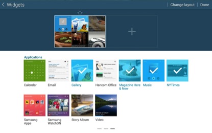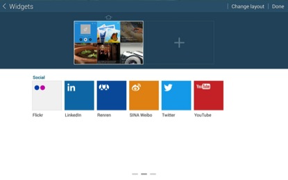 Perubahan layout sudah pre-defined, tidak bisa dilakukan secara manual dengan menggeser widget ke lokasi yang kita inginkan. Jadi kita harus meng-click icon Change Layout, maka Samsung akan merubahnya secara random.