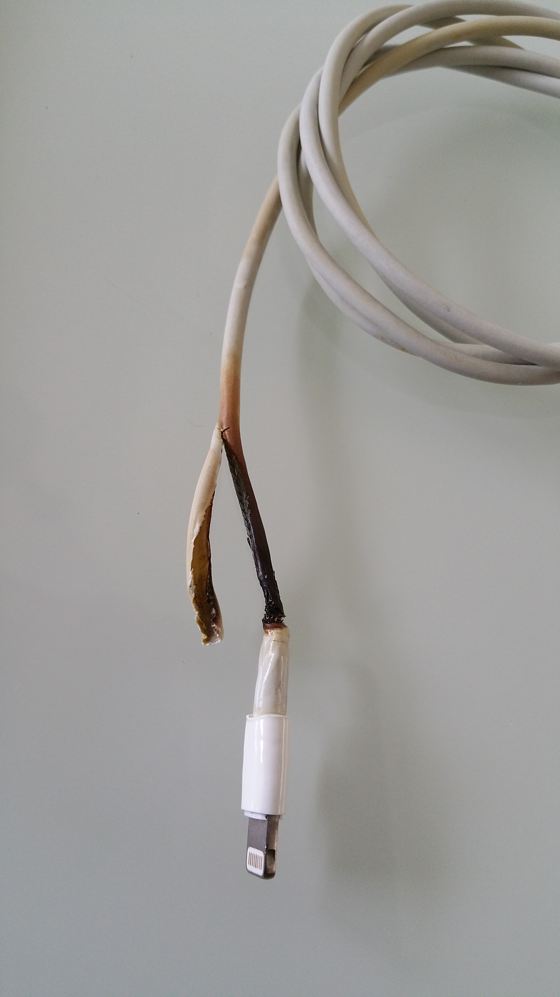 Coba perhatikan tampak kabel iPhone saya setelah hangus pagi ini: