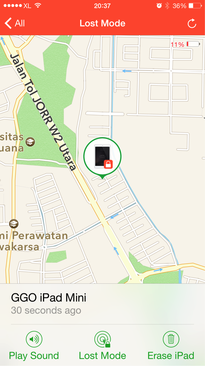 Find iPhone 6Saya mencoba mengirim ulang Lost Mode tadi, ternyata ketika message diterima iPad, tidak ada sound notification di iPad, oleh karena itulah si penemu tidak tahu kalau saya mengirimkan message hingga 3 kali.