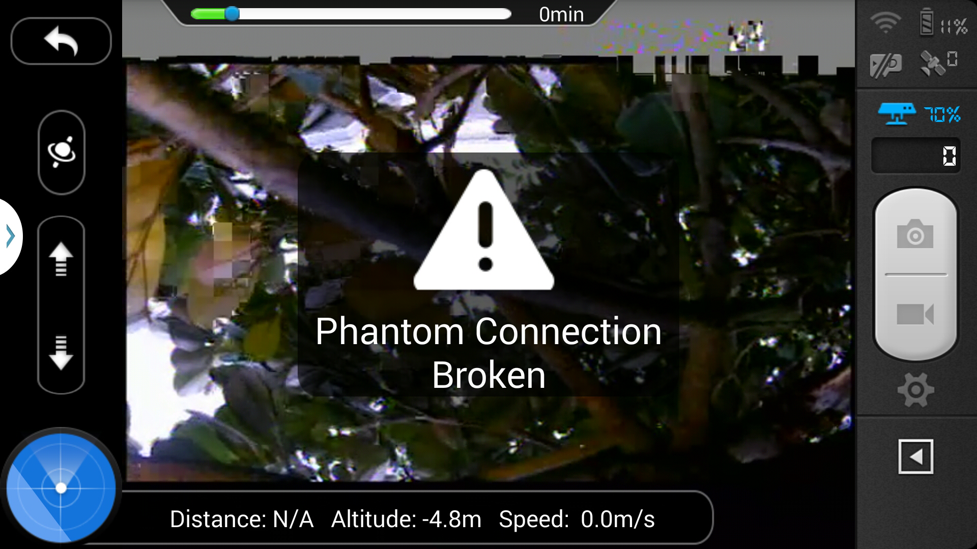 Sekitar 30 meter dari rumah saya, saya memperoleh kembali koneksi dengan drone saya yang menampilkan gambar seperti ini:
