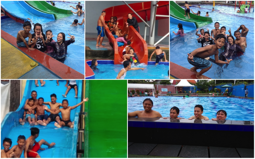 Benar saja,pada saat hari H adik adik kelihatan bahagia, antusias dan tak kenal lelah mengikuti games kecil, nyanyi bareng, berenang, bahkan mereka perform dance dan menyanyikan lagu ciptaan sendiri.