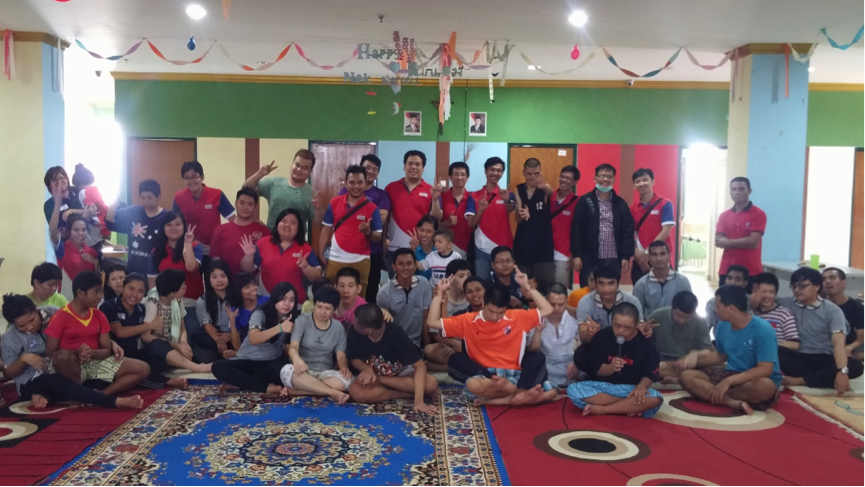 Candra : Ini Baksos pertama saya. Pertama kali tiba di sana saya agak2 takut apalagi ketika masuk ruangannya itu di beri pagar dari besi. Tapi setelah masuk ke dalam, ternyata anak-anak down syndrome itu baik2 walaupun umur nya sudah dewasa tetapi kelakuannya seperti anak kecil.