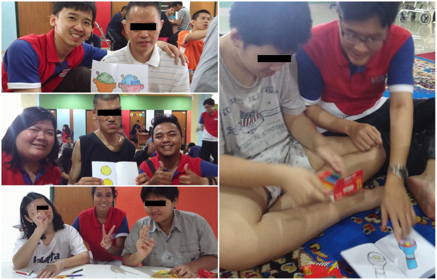 Awalnya saya bingung, bagaimana cara berinteraksi dengan mereka yang berkebutuhan khusus, jelas ini akan menjadi sulit. Tapi setelah tiba disana, membantu mereka mewarnai dan bernyanyi ternyata tidak sesulit bayangan saya. Mereka sangat menyambut kedatangan kami, mengajak kami berkenalan, bahkan beberapa dari mereka bisa mewarnai dengan baik dan bernyanyi tanpa nada fals (sesuatu yang sulit saya lakukan).