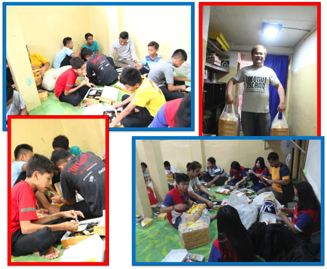 Setelah acara selesai saya juga memperhatikan mereka bergotong royong langsung mengumpulkan kotak2 snack yang kami bagikan. Namun saat mereka membersihkan kotak2 itu ternyata mereka membuka kotaknya satu persatu dan jika masih ada sisa snack mereka akan ambil dan di kumpulkan dalam 1 piring. Begitu terkejut saya melihat apa yg mereka lakukan dan point yang saya dapat dari hal ini ialah :