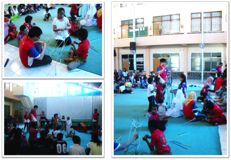 Di sana saya mendampingi mereka dalam permainan yang sudah kami siapkan, diantaranya membangun menara dari sedotan, membuat lingkaran dari kertas, dan tebak gambar berantai. Saat bermain bersama mereka saya merasa excited sekali jadi berasa anak kecil lagi.