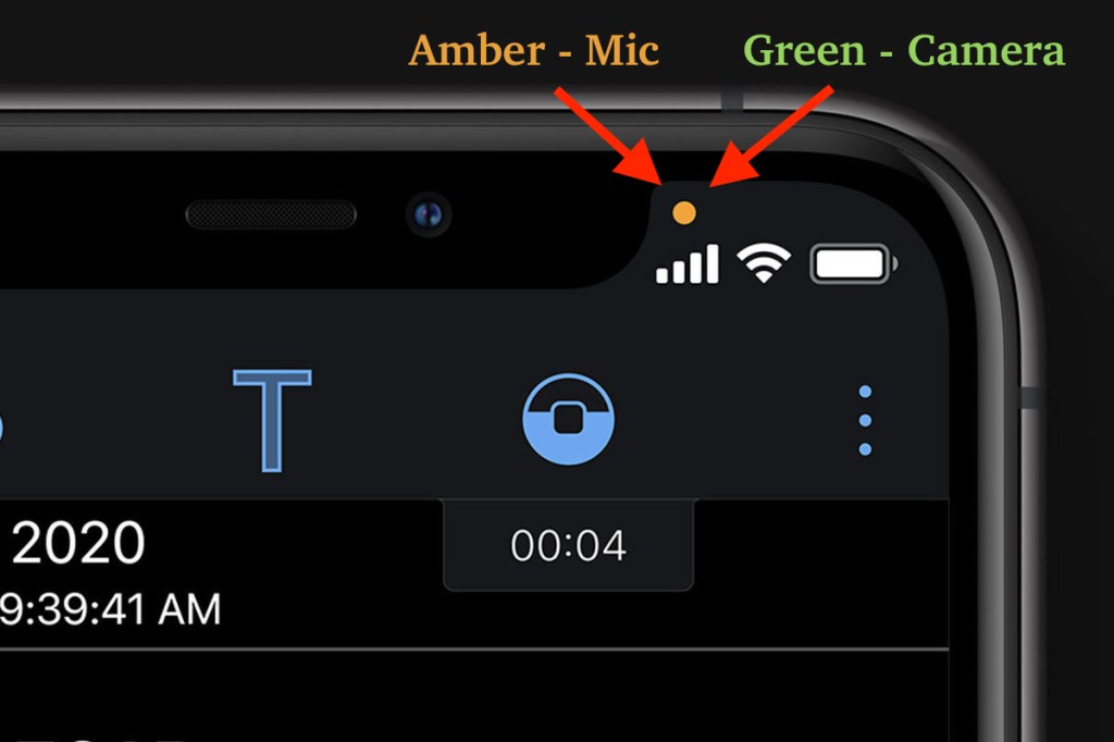 Nah di iOS 14 ini, Apple memberitahu kita dengan menyalakan LED kecil di sebelah kanan atas di dekat indicator WiFi atau Signal Cellular (untuk iPhone 11 Pro Max, pembaca coba cek untuk model lain apakah lokasinya sama).